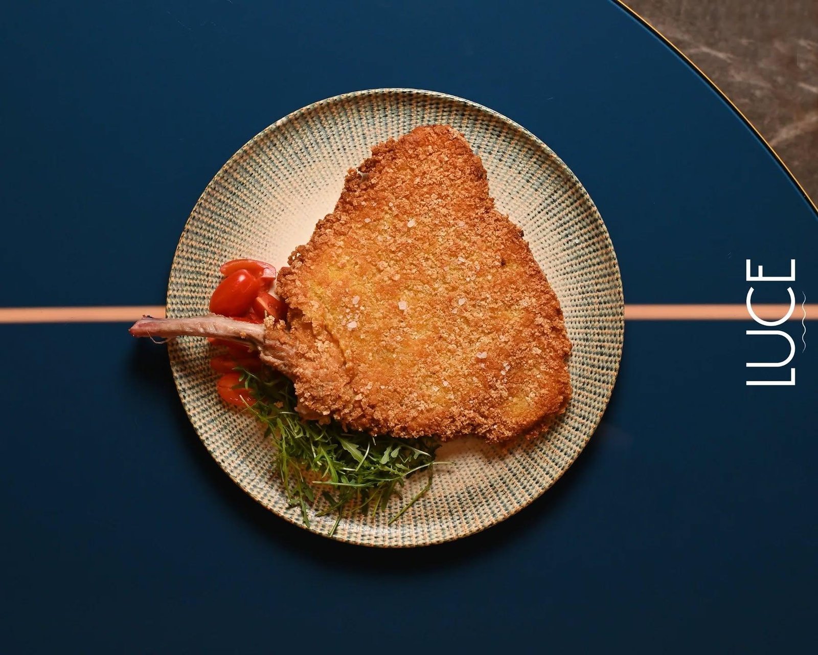 COTOLETTA ALLA MILANESE CON OSSO 300GR, CHIPS DI PATATE VIOLA, SALSA BERNESE HM