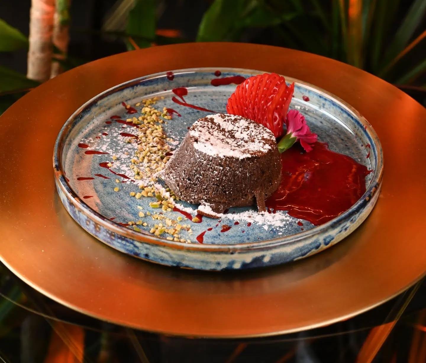 TORTINO AL CIOCCOLATO FONDENTE CON CUORE CALDO E SALSA DI ANACARDI