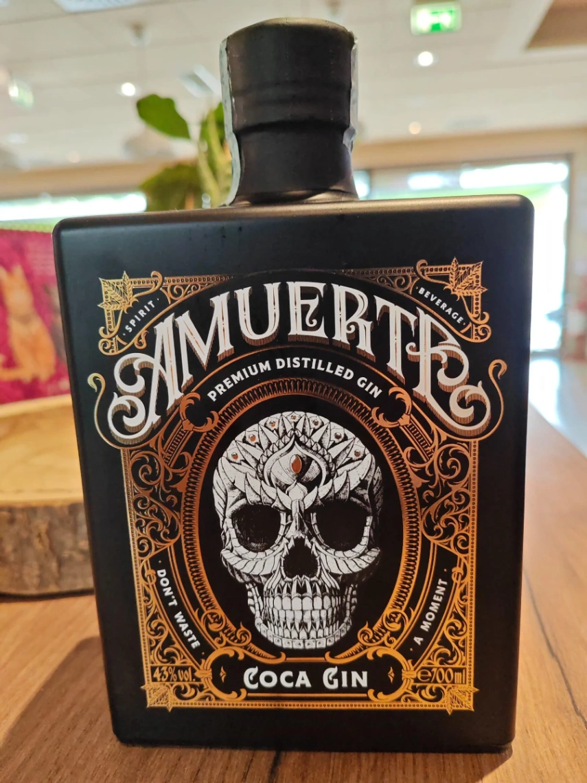 Bacche di ginepro, angelica, coriandolo, tamarillo, papaya, frutto del drago, physalis peruviana, arancia, peperone rosso e foglie di coca peruviana fusi nello spirito di un super gin. In una bottiglia disegnata da Adrian Dominguez e Havi Cruz, artisti di fama internazionale, e rifinita in lamina d’oro 24 carati.